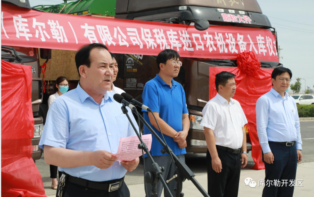 巴州黨委常委庫(kù)爾班江·胡土勒克在現(xiàn)場(chǎng)參加入庫(kù)儀式并講話,開發(fā)區(qū)黨工委副書記、管委會(huì)主任吉洪會(huì)參加儀式。